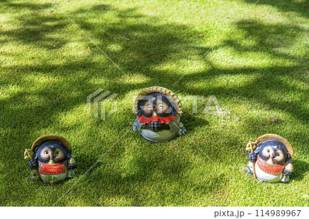 新緑の京都 あだし野念仏寺 可愛いたぬきの置き物と苔