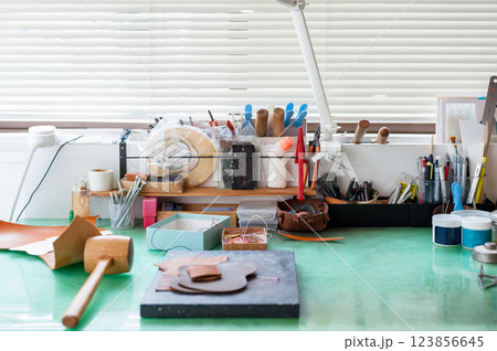 レザークラフトの作業場