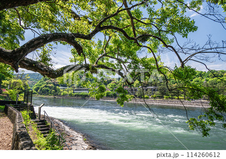 新緑の宇治川風景 京都府宇治市