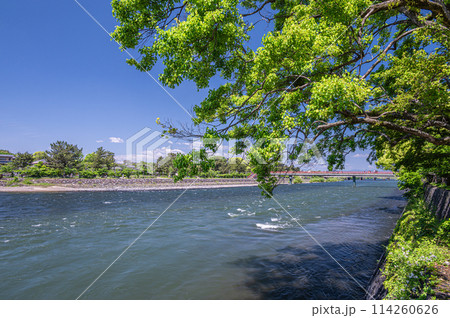 新緑の宇治川風景 白虹橋 京都府宇治市