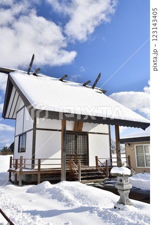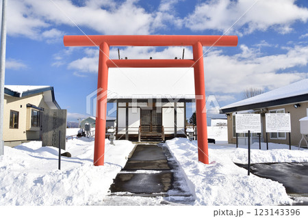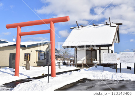 冬の北海道北斗市で萩野稲荷神社境内の風景を撮影