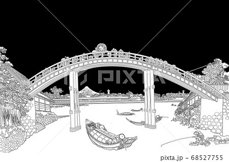 葛飾北斎イメージ深川万年橋白黒白バック2