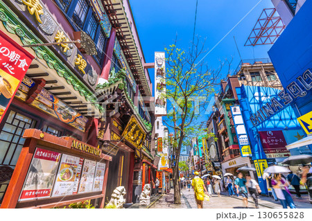 日本の横浜都市景観 横浜中華街。いまだコロナ禍だが、もはやコロナ禍前の人出