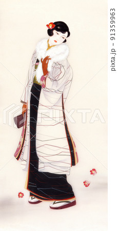大正浪漫 着物に長羽織姿の女性 切抜き
