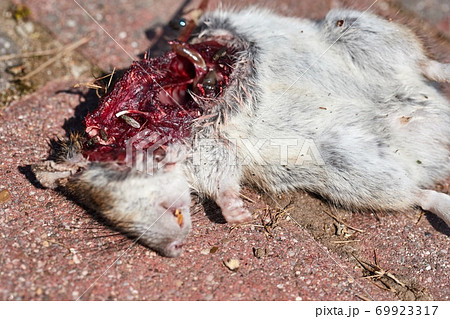 Dead mouse open fleshy wound