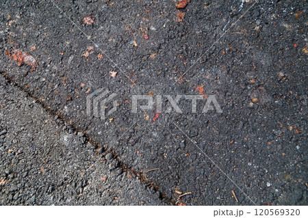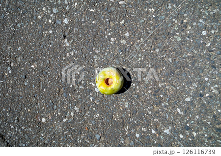 【日本】アスファルトの地面に落ちた柿の実のクローズアップ(鎌倉)