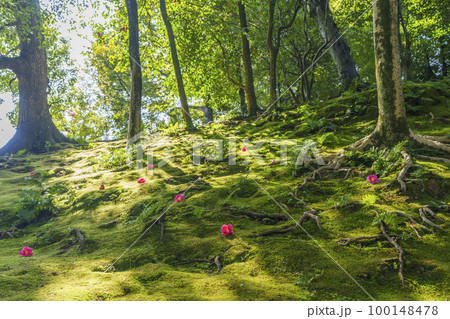 京都市 城南宮の苔と椿