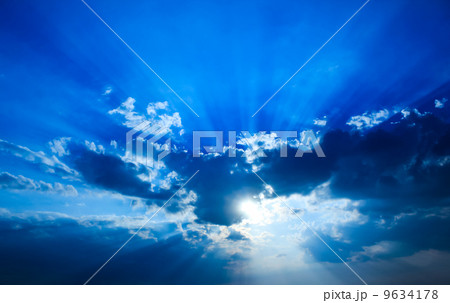 Beautiful dramatic sky with sun rays.