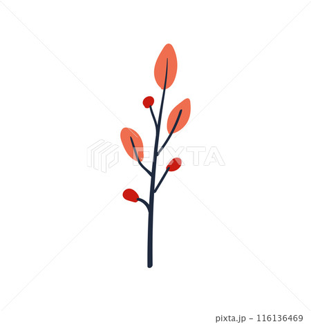 Folk plant. Simple leaves on a branch. Cartoon autumn botany. Minimalist style. Flat isolated vector illustration