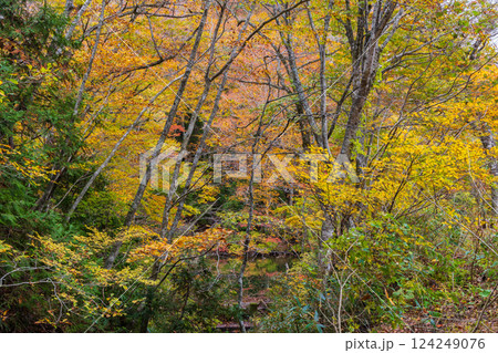 世界遺産白神山地の秋 紅葉の十二湖 落口の池