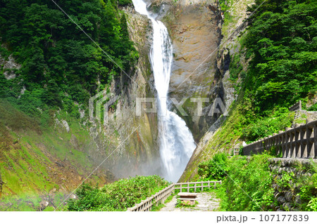富山県新緑の称名滝日本一の落差水しぶき怒涛の迫力