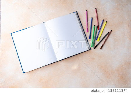 クレヨンとスケッチブックの水彩イラスト(お絵描き)