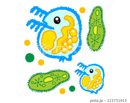 ミドリムシとミジンコの落書き風イラスト素材