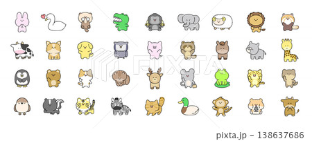 ゆるい手書き動物セット,いろいろな動物の落書き