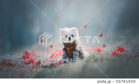 チワワと落椿