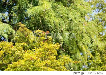 紅葉 カエデの葉 背景 大木 落羽松