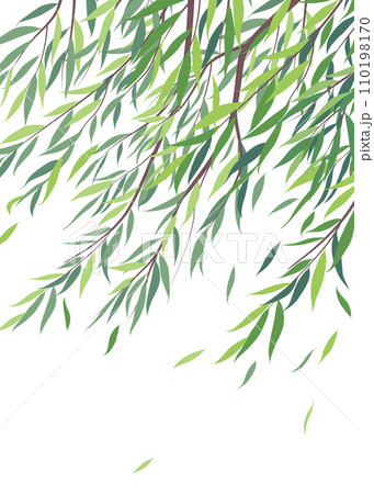 Watercolor seamless pattern fresh foliage weeping willow tree. Nature landscape, simple tree branches with green leaves isolated on white. Hand drawn botanical illustration green tones