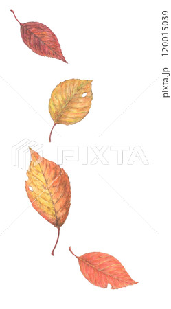 紅葉した落ち葉 水彩色鉛筆イラスト