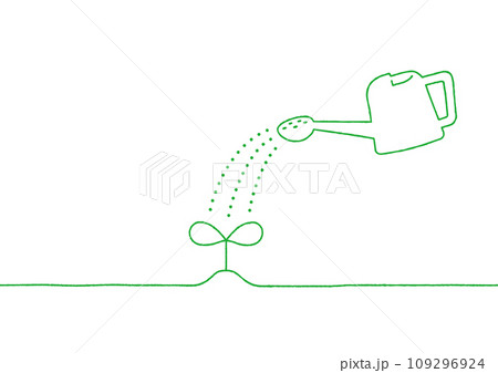 芽とジョウロの手描き線画イラスト 02