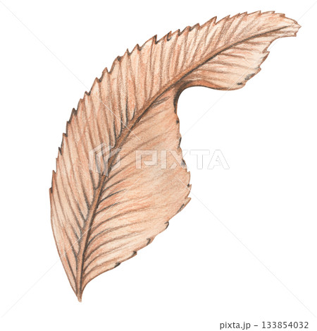Pastel leaf hand drawn botanical illustration in natural brown tones