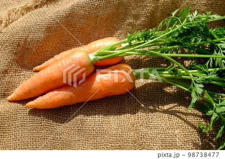 春にんじん 穫れたての人参 甘いニンジン 葉付き人参 緑黄色野菜 健康野菜 イメージ素材