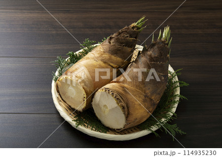 盆ざるに置いたたけのこ