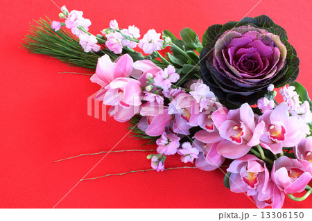 冬の背景素材・寄せ植え葉牡丹・縦位置