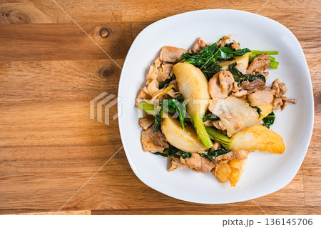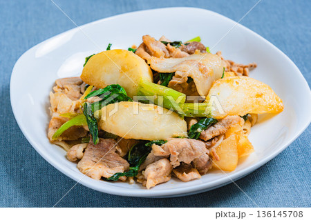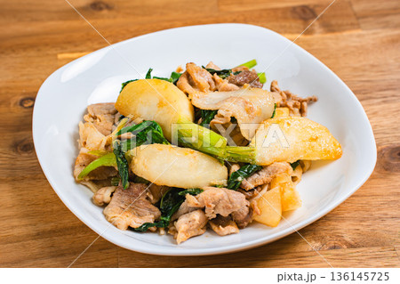 かぶと豚肉の味噌炒め
