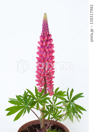 鉢植えのピンク色のルピナス