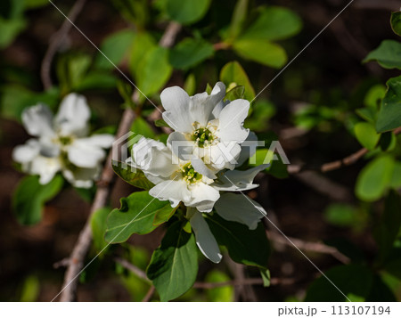 春に白い花を咲かせるリキュウバイ(利休梅)