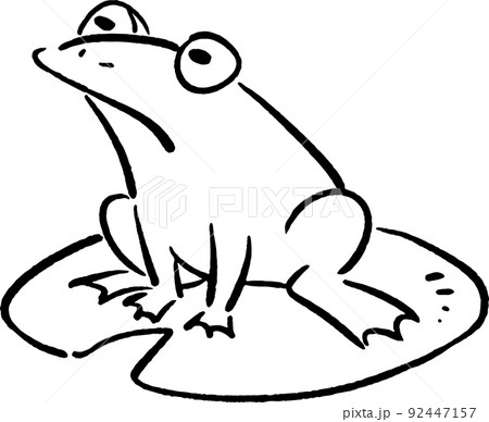 蓮の葉に座るカエル 手描き風イラスト線画素材