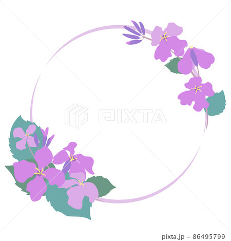 ムラサキハナナ(紫花菜)ショカツサイ(諸葛菜)花大根のイラスト円形フレーム