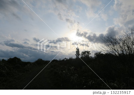 秋の夕暮れの葛登支岬灯台 北海道
