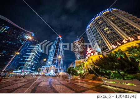 ライトアップされたマカオの豪華なカジノホテル 【中国・マカオ】