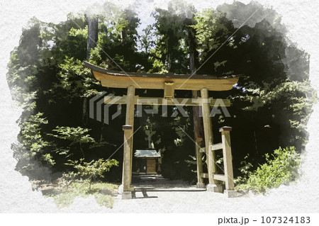 水彩画風 伊和神社 鳥居 兵庫県宍粟市