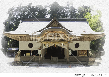 水彩画風 伊和神社 拝殿 兵庫県宍粟市