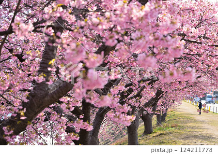 青空に映える河津桜の並木道[乙川/愛知県岡崎市]