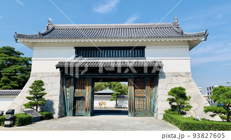 真夏の青空に映える岡崎城大手門[岡崎城公園/愛知県岡崎市]