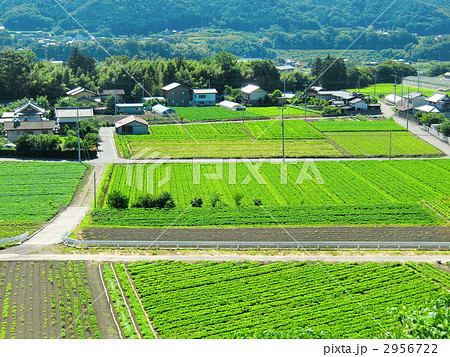 上越方面の山並が見えるコンニャク畑 高原野菜 赤城高原 昭和村