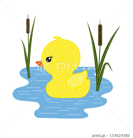 Cute cartoon duck. Vector pond illustration. Baby print