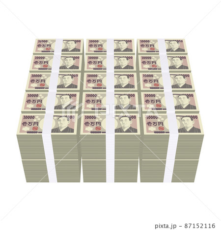 経済のイラスト素材 マネー 平らに積まれた札束 リアル風一万円札 十億円(2_3)