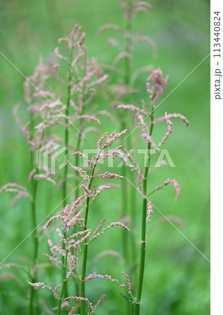 自然 植物 スイバ、雌株の円錐花序。ギシギシと違って花や実は綺麗な赤味を帯びます