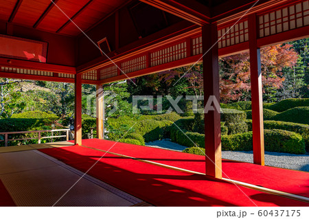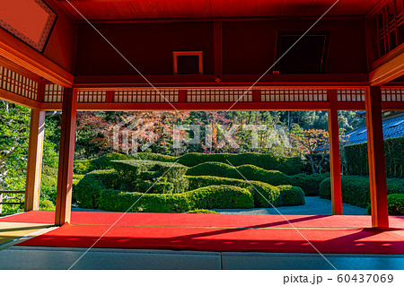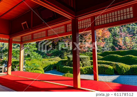 滋賀県 紅葉の大池寺 枯山水の蓬莱庭園