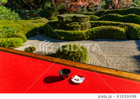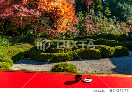 滋賀県 紅葉の大池寺 枯山水の蓬莱庭園を眺めながら抹茶をいただく