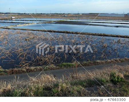 水掘り-10月の蓮田:レンコン畑(新潟県見附市内にて)