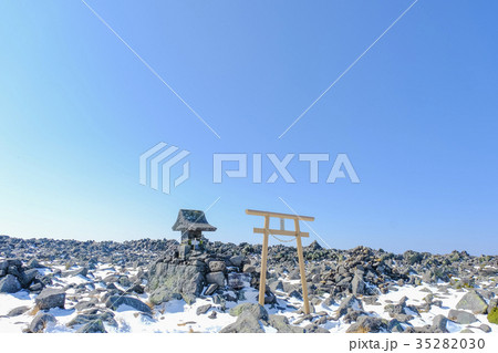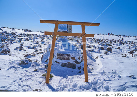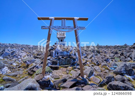 冬の長野県 蓼科山の山頂にある蓼科神社奥社