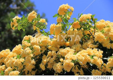 青空に映える満開のモッコウバラ