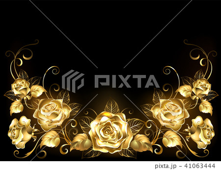 Black background with gold roses