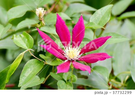 三鷹の花 植物 三鷹中原に咲く濃いピンクのクレマチス