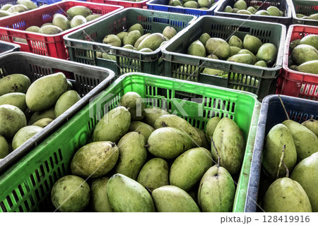 freshly harvested unripe green mango fruit in agriculture industry warehouse